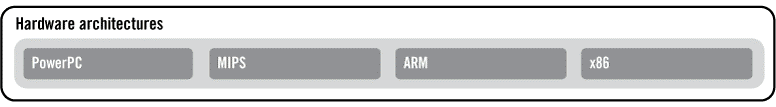 - 規格ベースのテクノロジとモジュール型アーキテクチャにより、開発者のスキルを活用し、かつ、複数の製品でソフトウエア(オープン ソース アプリケーションを含む)を再利用