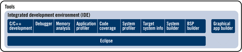 オープン ソース ソリューションを提供する企業とは異なり、ハイブリッド ソフトウエア モデルとコードをオープンに開発する透過開発プロセスを提供します。この独自のアプローチと、マルチコア プロセシングおよび Linux API に対する実績ある成熟したサポートにより、QNX ソフトウエア シス テムズは、ネットワーク市場の他のすべての組み込みソフトウエア ベンダーとは一線を画しています。また、業界で最も広範なツール スイートも提供しています。Eclipse ベースの受賞歴のあるこのツール スイートは、迅速な開発に最適です。